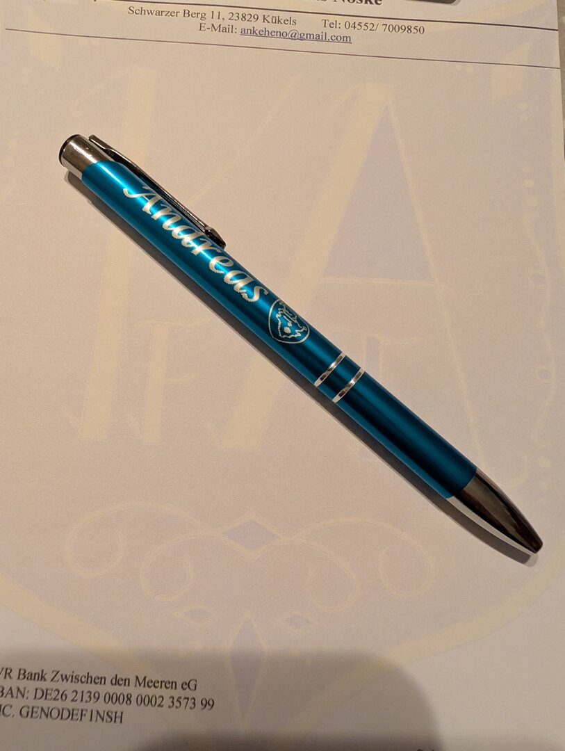Kugelschreiber aus Metall mit Mine. Lasergravur