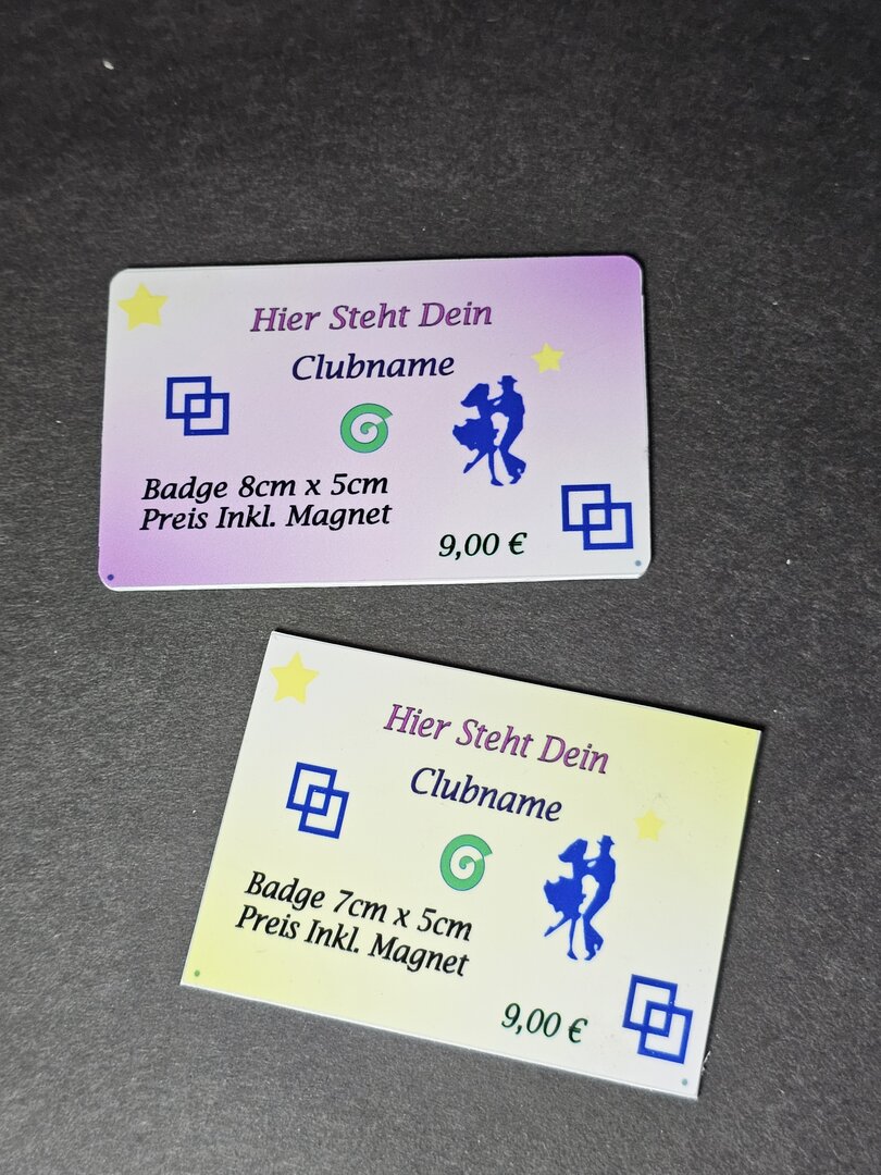 Badge ist ein Schild meist mit Logo und wird häufig mit Magnet befestigt. Ein Badge findet Anwendung in z. B. Sportvereinen wie Square Dance, Dart und anderen. Es kann aber auch bei Messen für Mitarbeiter verwendet werden.